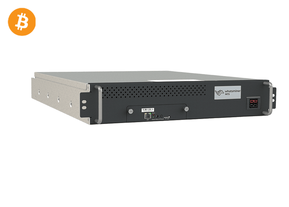 Model Whatsminer M73 from MicroBT mining SHA-256 algorithm with a maximum hashrate of 526Th/s for a power consumption of 7627W.