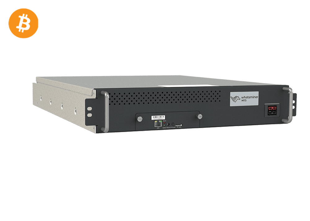 Model Whatsminer M73S from MicroBT mining SHA-256 algorithm with a maximum hashrate of 552Th/s for a power consumption of 7452W.